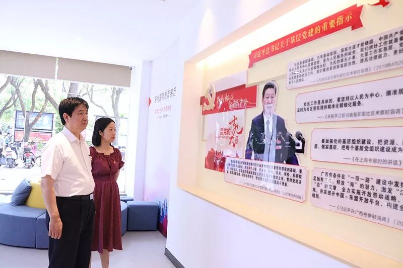 揭牌仪式后,全桂寿一行进入梧州市旺城党群服务中心参观指导,并与在场参与活动的居民群众互动交流。