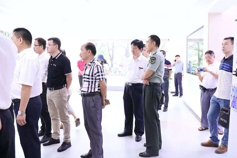 ▲市委常委、组织部长张惠强(右二)、万秀区委书记曾健勇(右一)、万秀区委常委、组织部长韦华金(右四)与梧州爱尔眼科医院党支部书记陈杰亲切交谈。
