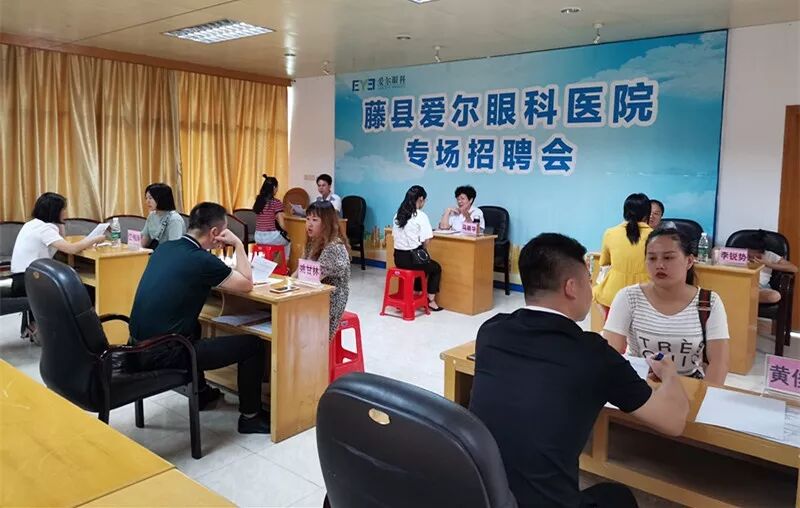 7月28日,藤县爱尔眼科医院现场招聘会在藤县藤州大道188号东信大酒店六楼会议室圆满举行。医院共设院长(副院长)、各部门学科主任、眼科医师、住院医师、影像技师、检验师、药剂师等多个岗位,在招聘会现场,应聘者络绎不绝。