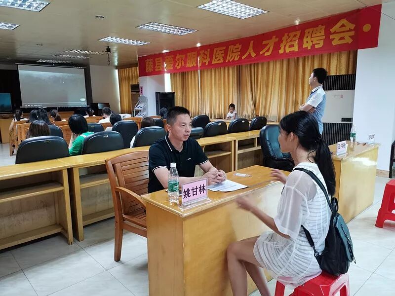 此次招聘会得到梧州爱尔眼科医院的高度重视及大力支持,梧州爱尔眼科医院党支部书记、CEO陈杰,业务院长、主任医师马丽华,医务部主任唐辉,财务部主任江伟玲,藤县爱尔眼科医院筹备负责人姚甘林等作为面试官参与了招聘会。