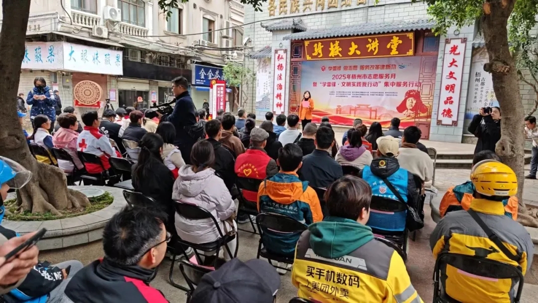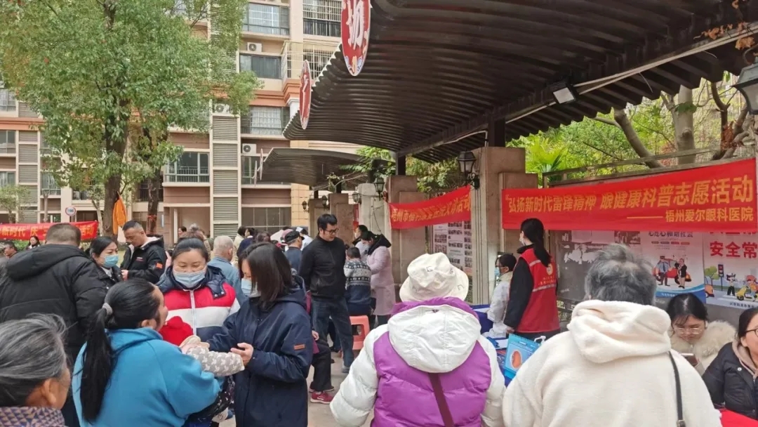 2025年3月5日是第62个"学雷锋纪念日"和第5个“广西志愿者日”,为贯彻落实自治区《关于开展2025年广西志愿服务月主题活动的通知》要求,大力弘扬新时代雷锋精神和志愿服务精神,营造全社会人人参与文明实践的浓厚氛围,3月5日,由中共梧州市委社会工作部、梧州市精神文明建设委员会办公室、共青团梧州市委员会、梧州市妇女联合会主办,梧州爱尔眼科医院等爱心志愿单位、梧州志愿服务联合会承办的梧州市2025年广西志愿服务月暨“学雷锋 文明实践我行动”集中示范活动在万秀区城南街道南中社区珠玑广场正式启动,由中共梧州市龙圩区委社会工作部、梧州市龙圩区精神文明建设办公室、共青团梧州市龙圩区委员会、梧州市龙圩区妇女联合会主办的龙圩区2025年志愿服务月暨“学雷锋 文明实践我行动”志愿者服务活动在“梧城小哥”暖新驿站开展,梧州爱尔眼科医院龙圩门诊部等10个爱心志愿单位积极参加活动。