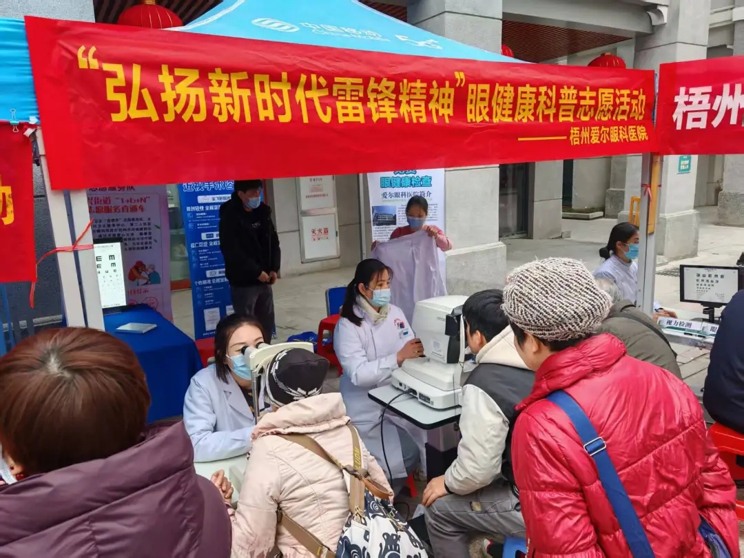 雷锋精神,其实质和核心就是全心全意为人民服务,随着时代的发展和社会的进步,雷锋精神志愿服务的内容和形式也日渐丰富和多样。梧州爱尔眼科医院、龙圩门诊部始终秉承“使所有人,无论贫穷富裕,都享有眼健康的权利”的服务宗旨,坚持大力弘扬“奉献、友爱、互助、进步”的志愿精神,“到群众需要的地方去”充分发挥眼科专业优势,帮助梧州市民树立科学健康的护眼观念。今后,医院党支部将继续发挥先锋模范作用,带领全体员工继续弘扬雷锋精神,续写雷锋故事,将“我为群众办实事”落到实处,不断提高群众爱眼护眼意识,为健康梧州、健康中国贡献力量。