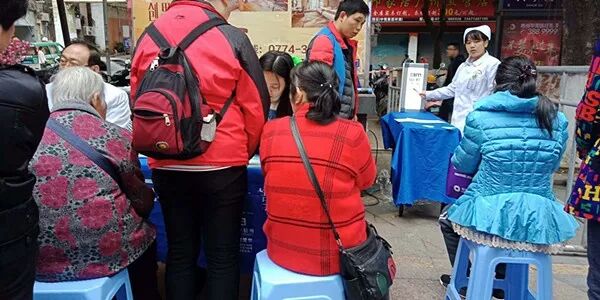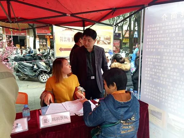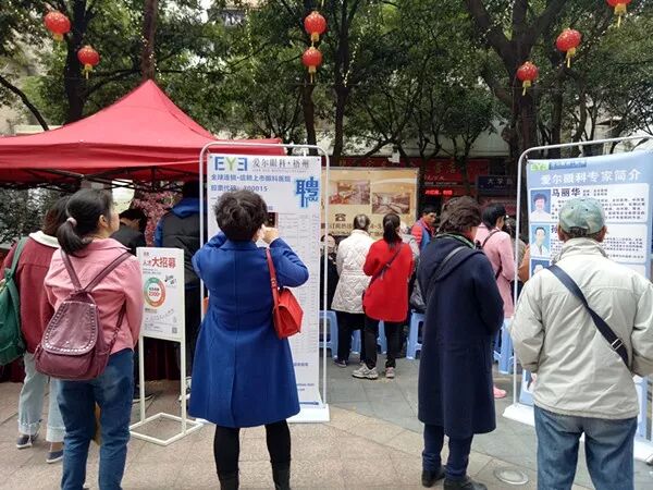 ▲梧州爱尔眼科医院招聘点吸引了许多求职者前来咨询、应聘。
