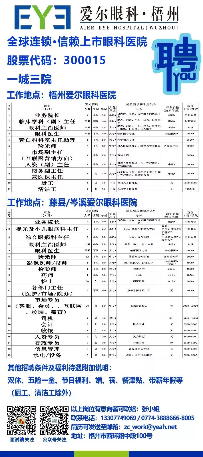 梧州(含藤县、岑溪分院)爱尔眼科医院招聘岗位