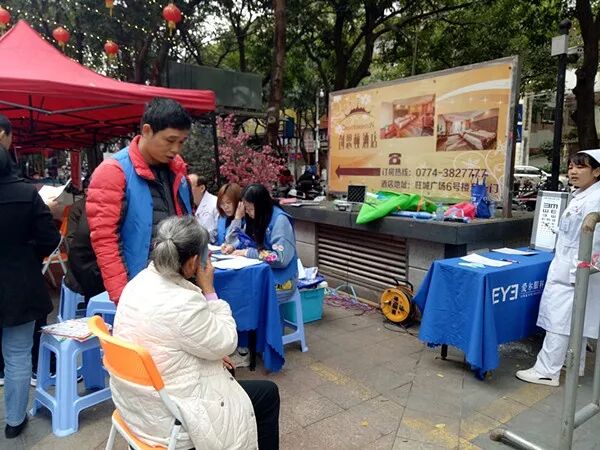 于此同时,为让更多的人关注眼健康,梧州爱尔眼科医院副院长孙建国带领医护人员在招聘点开展爱心义诊活动。认真地为每一位前来的市民进行视力、裂隙灯等眼部检查,耐心地为患有眼疾的患者解答疑问,并针对检查后的不同情况给予相关的治疗意见与建议。