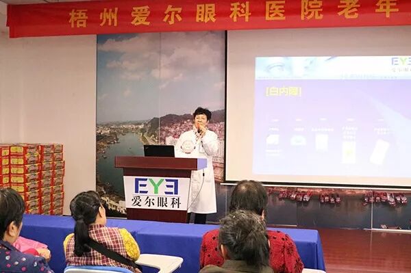 讲堂上,梧州爱尔眼科医院院长马丽华为老年人讲解了眼的生理结构以及日常生活中如何预防、治疗老年性眼病的相关知识。