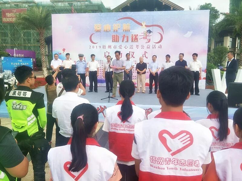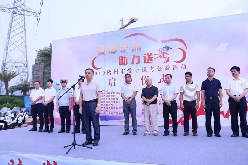 一年一度的高考又将来临,高考学子们也即将奔赴考场。6月5日上午,由梧州市精神文明建设委员会办公室、梧州市教育局、梧州市交通运输局、梧州市城市管理监督局、梧州广播电视台、梧州日报社、共青团梧州市委员会、梧州市公安局交警支队共同主办,梧州广播电视台交通音乐之声承办,彰泰集团梧州公司、梧州爱尔眼科医院有限公司协办的梧州市“2019爱心送考”公益活动启动仪式在梧州彰泰城举行。