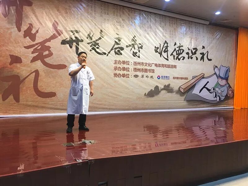 “开笔礼”是中国传统文化中少儿识字习礼的一种启蒙教育形式。7月21日,由梧州市文化广电体育和旅游局主办,梧州市图书馆承办,梧州爱尔眼科医院、桂林银行、翠玲珑等协办的“开笔明礼启蒙人生‘传统’开笔礼”暑期活动在梧州市图书馆多功能报告厅开展。
