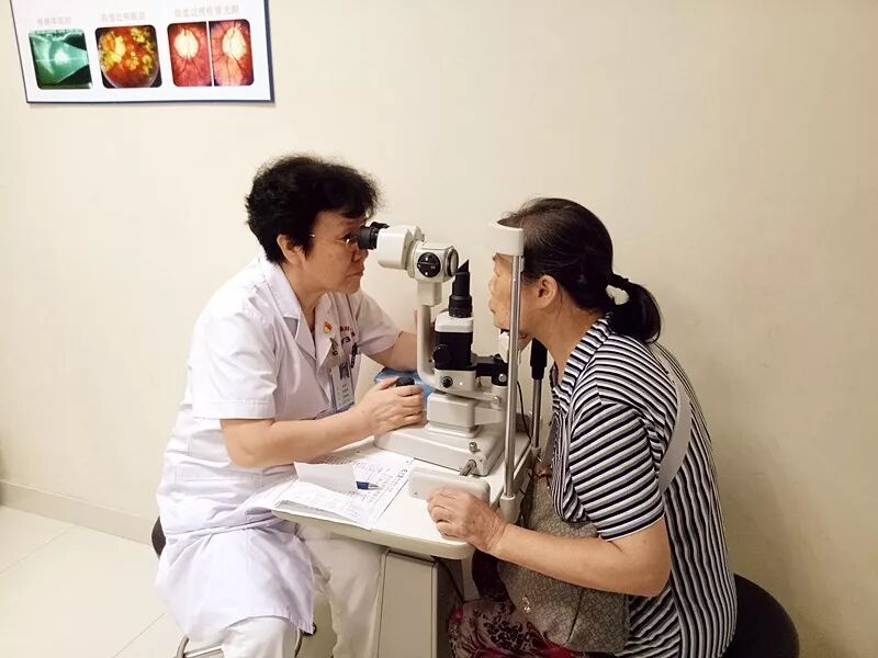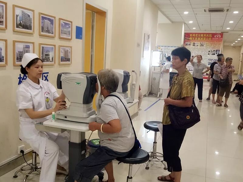 ▲梧州爱尔眼科医院院长马丽华给老年朋友们检查眼睛。