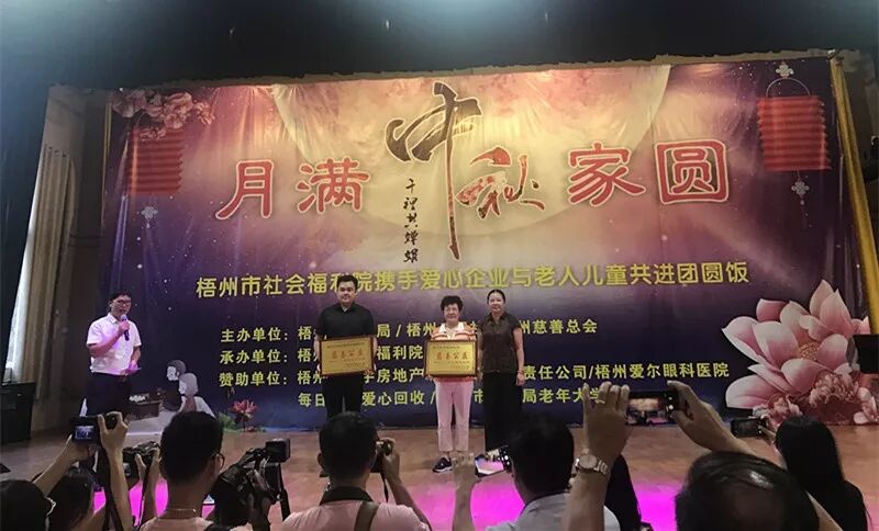 活动由梧州市民政局、梧州日报社、梧州市慈善总会等联合主办。现场福利院老人、孩子与福利院领导、爱心企业、爱心人士一起尝佳肴品月饼,提前吃团圆饭,同举杯贺中秋。梧州爱尔眼科医院业务院长、主任医师马丽华作为爱心企业代表参加了活动。